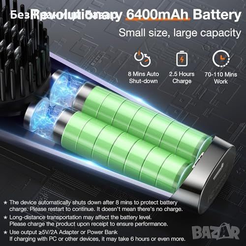 Мощна батерия: 6400mAh, зарежда се за 2.5 часа, позволява до 11 сесии с едно зареждане.