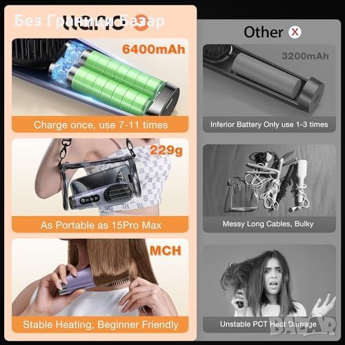 Нова Безжична Четка за Изправяне с Йонна Технология и Бързо Загряване Жени Прическа