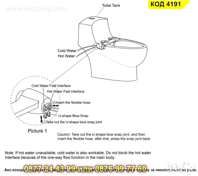 Този аксесоар за биде за тоалетната седалка е лесен за инсталиране, като е проектиран да ви предложи оптимално измиване с вода след използване на тоалетната. Биде приставката е устройство, което се монтира под съществуващия тоалетен капак и което чрез комбиниране на функциите на тоалетна и биде в един и същи санитарен обект подобрява хигиената и комфорта, като същевременно се постига спестяване на пространство (вече не е необходимо монтиране на отделно биде).