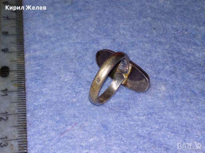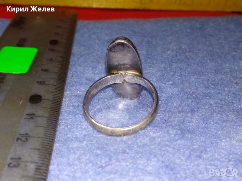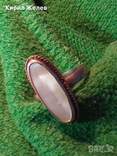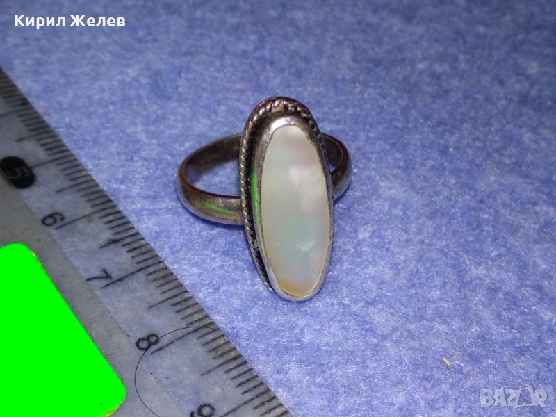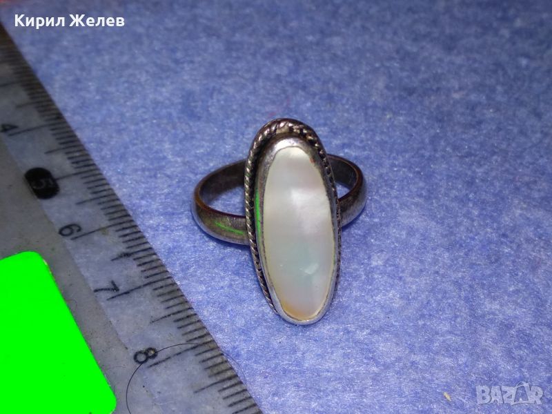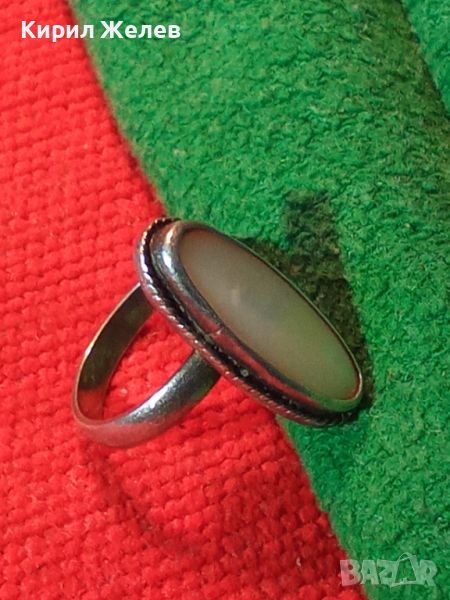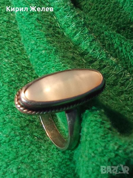 СТАР КЛАСИЧЕСКИ СРЕБЪРЕН ПРЪСТЕН СРЕБРО 925 с ШЛИФОВАН СЕДЕФ МАЙСТОРСКА РЕТРО ИЗРАБОТКА 25926