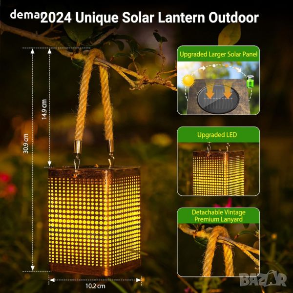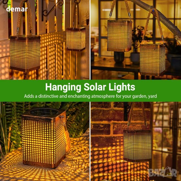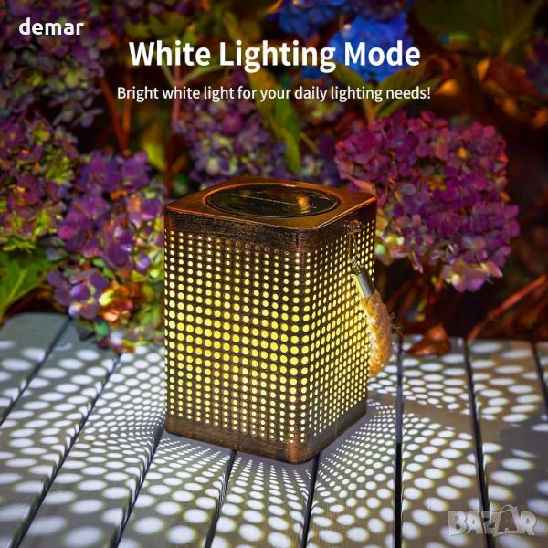 Този класически и спретнато проектиран соларен фенер се отличава с уникален кух дизайн и ретро дръжка от конопено въже, предлагайки не само отличителен стил, но и функционална преносимост. Фенерът е оборудван с по-голям соларен панел и батерии с голям капацитет, осигуряващи по-бързо зареждане и дълготрайна работа - до 12-15 часа при пълно зареждане. Той разполага с два режима на осветяване, топло бяло и бяло, и е изработен от здрав метал с IP65 устойчивост на атмосферни влияния, което го прави подходящ за всякакви метеорологични условия. Лесен за използване, той автоматично се включва на здрач и се изключва на зазоряване, когато е поставен на пряка слънчева светлина, идеален за градини, задни дворове, пътеки и къмпинг.