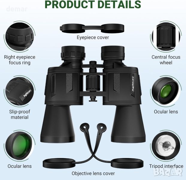 Бинокъл AgikiLav 20 * 50, HD водоустойчив голям окуляр с призма BAK4 и леща с многослойно покритие