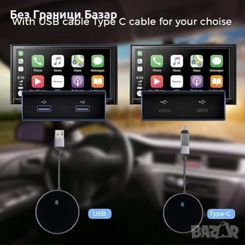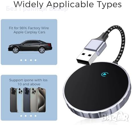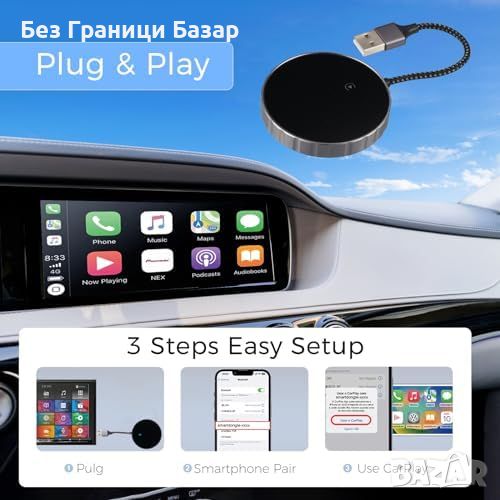 Нов Бърз Безжичен CarPlay Адаптер, Пълна Функционалност за iPhone кола Айфон