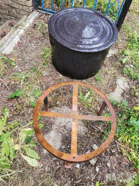 Стойка върху която се поставя казан за варене на буркани (пиростия) с диаметър 57 см. Здрава, метална. Казана от снимките не е наличен.