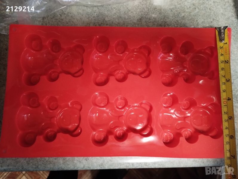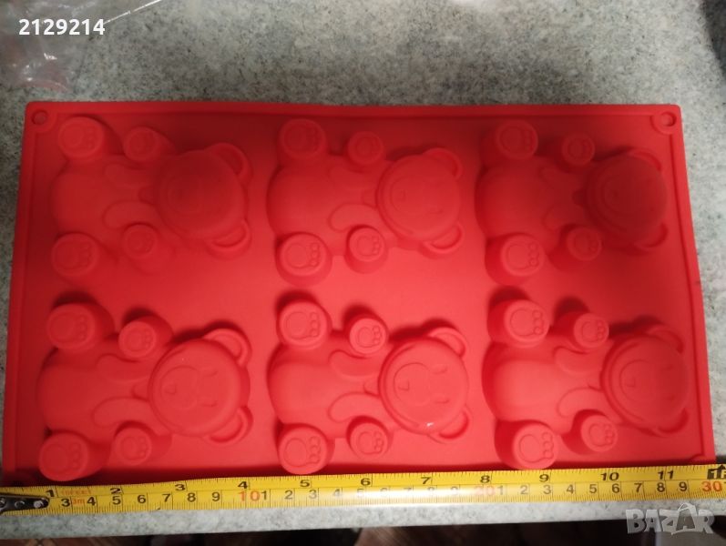Силиконова форма за печене с формата на мечета, 30 см. Червен цвят.