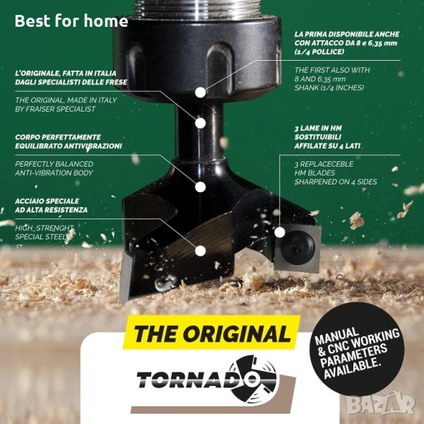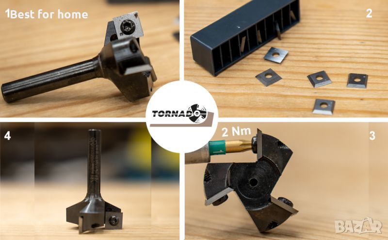 ✅ ТЕХНИЧЕСКИ ХАРАКТЕРИСТИКИ: Фреза за дърва Tornado е с диаметър 35 мм и прът 12 мм и н. 3 сменяеми остри колена от 4 страни по 12 мм