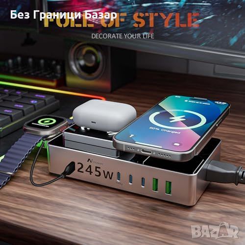 Нова Мощна Зарядна Станция 245W за Множество Устройства USB C Универсално Зарядно