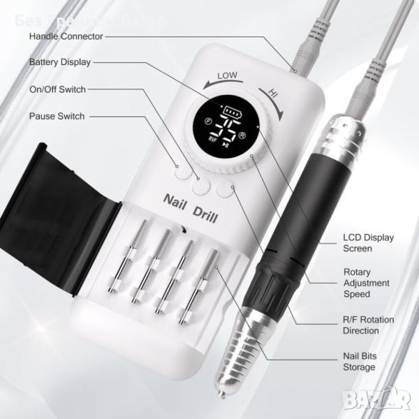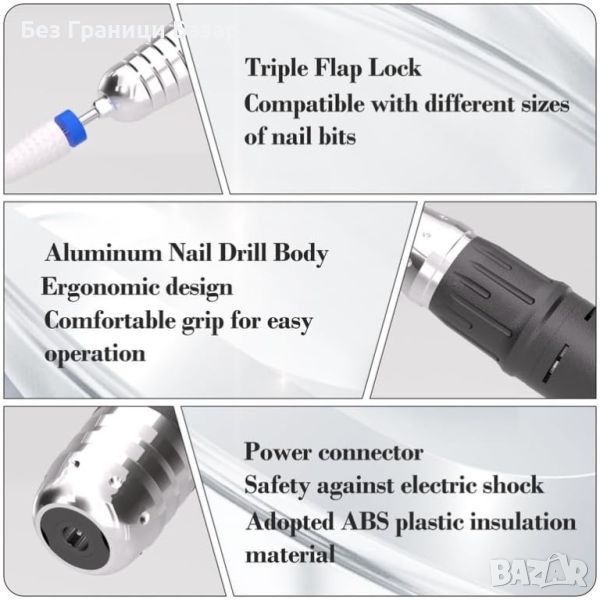 Професионална електрическа пила за нокти: Изпълнява маникюри и педикюри с лекота, подходящ за акрилни нокти и гел.