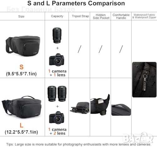 Нова Чанта за Фотоапарат Nikon Sony Лека DSLR Компактна Водоустойчива