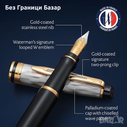 Нов Луксозен Подарък Писалка Waterman със Златисти Орнаменти Подаръчна Кутия Средно Перо