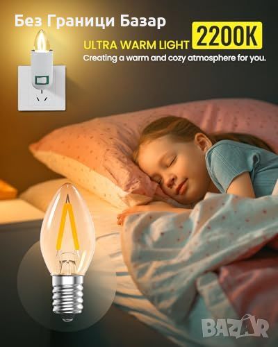 Нови 2 броя Мини LED Нощна Крушка LumiGo E14, Амбър Стъкло, 2200K