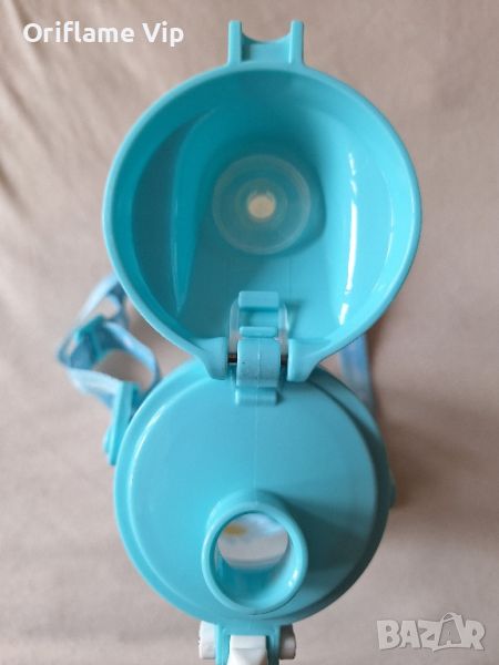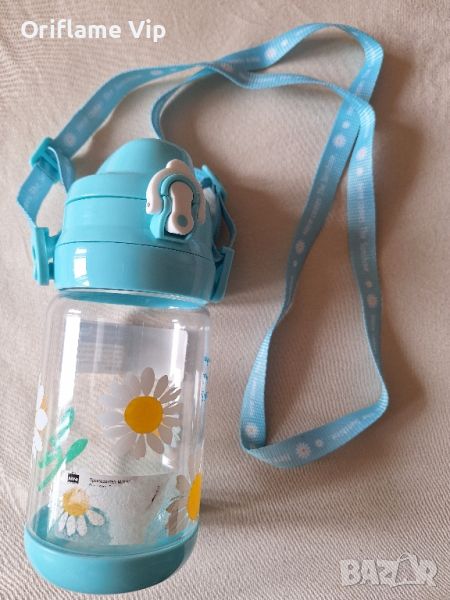Детско шише за вода с презрамка за удобно носене.