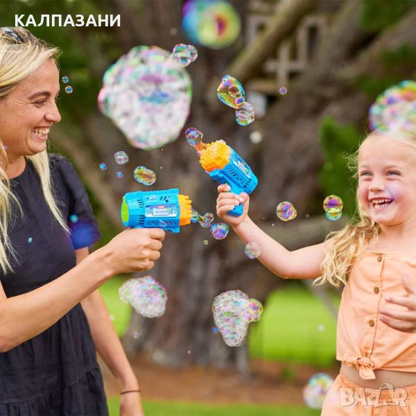 Изстреляй милиони балончета с моторизирания мини бластер Bunch O Bubbles! Със своя лесен за използване спусък и лек дизайн, този мини бластер е идеален за игра на открито и на партита. Bunch O Bubbles премахва бъркотията при издухването на сапунени балончета. Изстрелвай 3000 в минута! Осигурява часове забавление, без да е необходимо издухване. Бластерът идва с 80 мл течност за балончета.