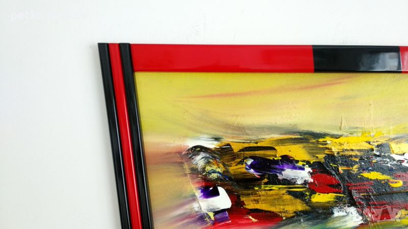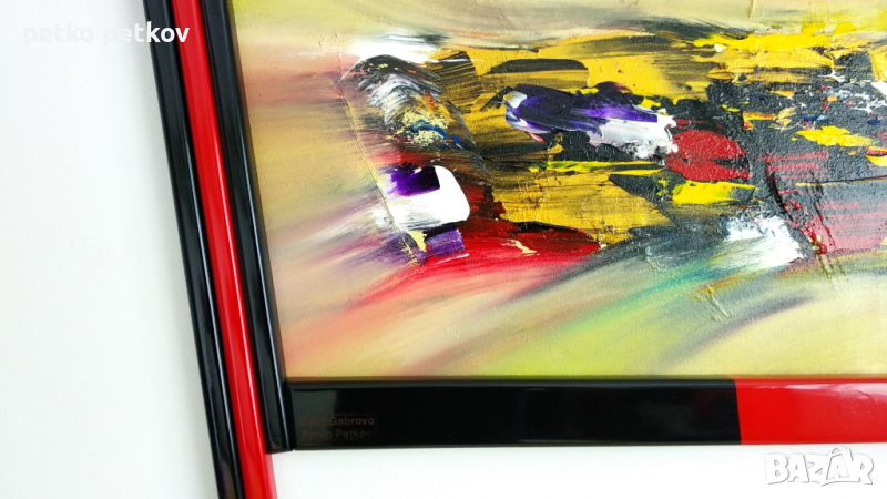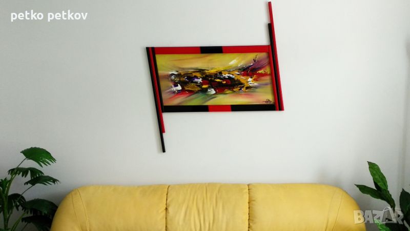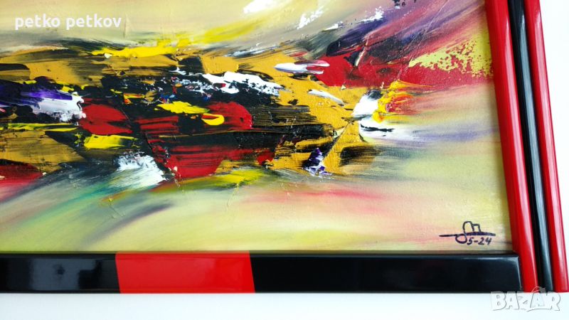 Акрил върху платно и собствено производство дървена рамка-уникат. Размери 106/99 см.