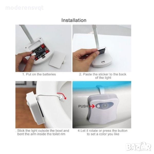 Омръзнало ви е да се събуждате посред нощ, ходейки по нужда, но светлината да ви заслепява? Нарушаваш ли съня си всеки път щом отидеш по нужда нощем? Забравете за това! Потопете се в романтична атмосфера с приятна светлина. Осигурете си подходящо осветление за тоалетна чиния със сензор за движение Lightbowl . Светлината ще светне само когато влезнете в тоалетната и така няма да вид разни яркото осветление. през нощта.