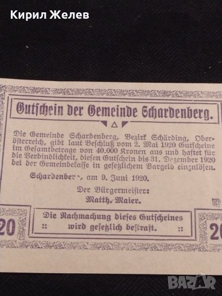 Банкнота НОТГЕЛД 20 хелер 1920г. Австрия перфектно състояние за КОЛЕКЦИОНЕРИ 44932