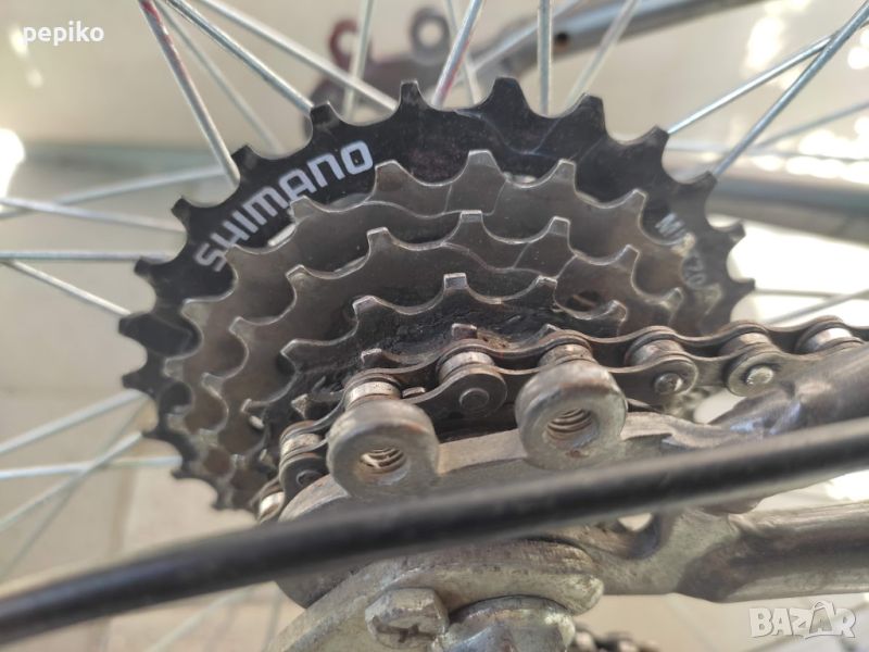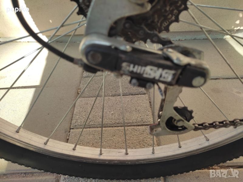 Употребяван мтв велосипед VIPER FRX 26 цола,здрава метална рамка 26 цола с 18 скорости,фиксирани превключватели SHIMANO TOURNEY 3 X 7,метални курбели с пластмасово покритие,пластмасови педали,преден отклонител SHIMANO,задни венци SHIMANO 6,заден отклонител SHIMANO,емайлирани черни главини,никелирано колче на седалката,удобна седалка на релси,преден амортисьор ZOOM,заден амортисьор пружина,алуминиеви вибрейк спирачки,алуминиеви стандартни капли,НОВИ външни гуми 26 х 1,95 със спортен грайфер,размер на рамката 46 х 57,тегло 16,9 кг.