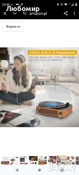 Винилов грамофон с ретро високоговорител за винилови плочи