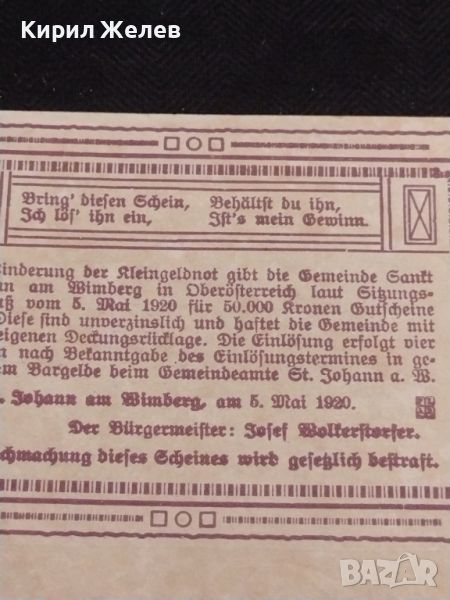 Банкнота НОТГЕЛД 50 хелер 1920г. Австрия перфектно състояние за КОЛЕКЦИОНЕРИ 44981 → Обява 45544676