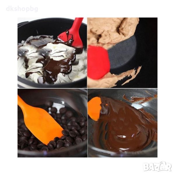 Сладкарска силиконова четка и шпатула за готвене става практичен и сигурен помощник в кухнята. Материалът, от който са направени е висококачествен, гъвкав силикон. Дръжката е изработена от еко пластмаса, която е устойчива на топлина. Най-важното е, че не оставя допълнителен привкус и артомат на храната. Устойчиви са на мазнини, масла и плодови киселини, подходяща е за почистване в съдомиялна машина, не се износват и с тях може да се нанася дори и горещо олио без проблеми…