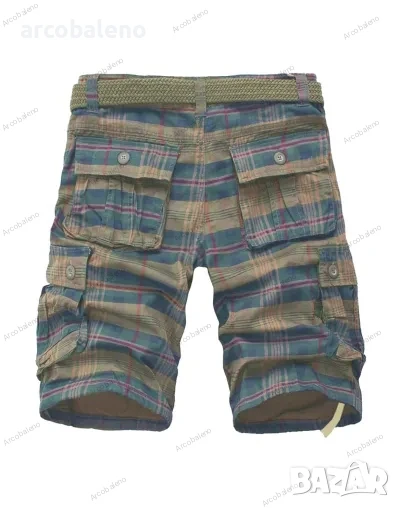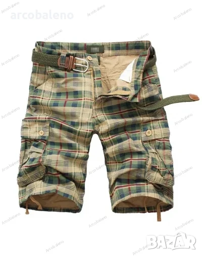 Мъжки къси карирани карго панталони с половин джоб, 2цвята