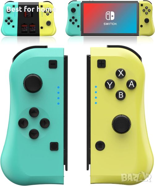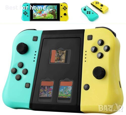 Съвместим с Switch Joy Con, съвместим с резервен контролер за Switch, Motion Control, жълт и зелен с ръкохватка