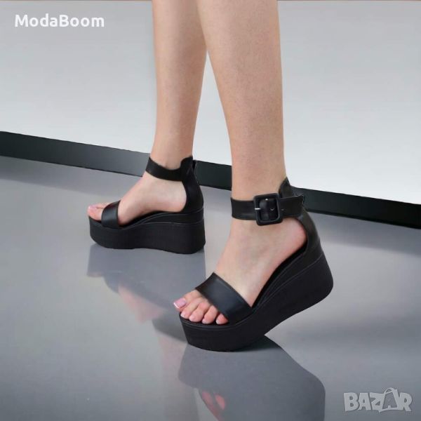 ✨🖤Черни кожени дамски сандали на платформа🖤✨