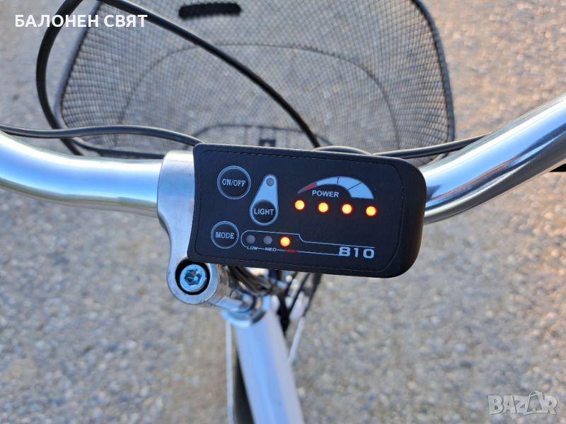 Дисплей, монтиран на кормилото, показващ зареденост на батерията, превключване на трите режима за движение и бутон за преден фар (преден фар не е предложен, но има предвидена букса/клема на електрическия контролер)
