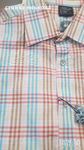 Продавам мъжка карирана риза лек, немачкаем плат с надпис G Star на гърба. Размерът е между М и L