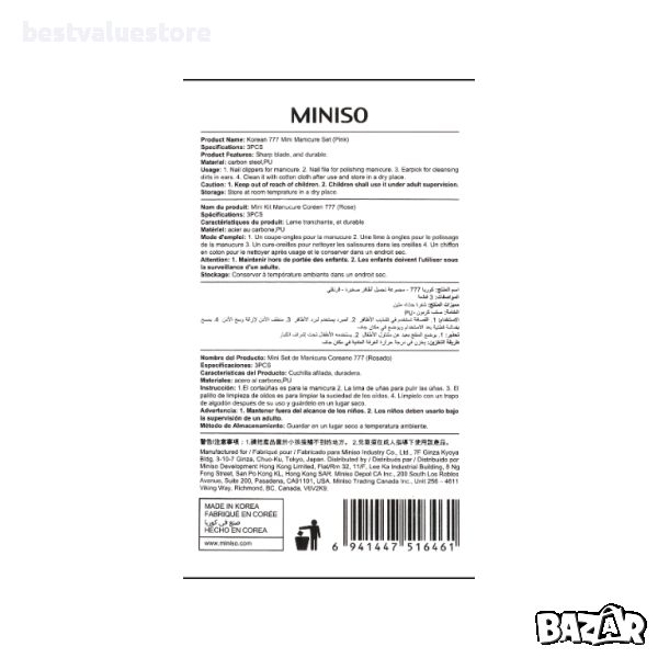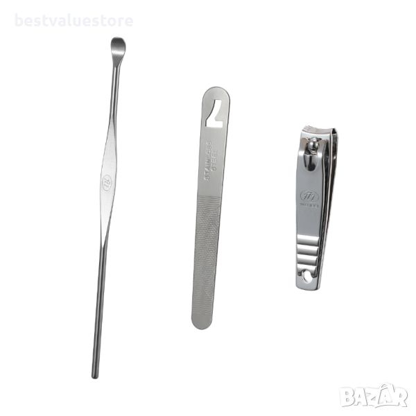 Нокторезачка: изработена от висококачествена неръждаема стомана. Пила за нокти: идеална за ежедневната поддръжка на ноктите. Клечка за уши: за ефективно почистване на ушите. Комплектът е с кутия, удобна при пътуване.