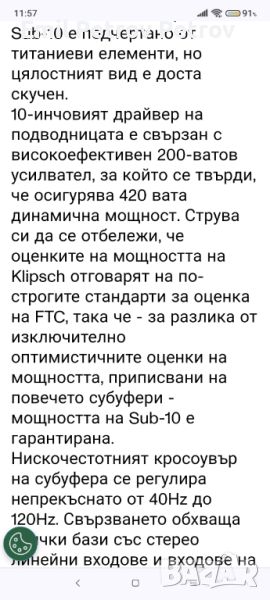 Топ състояние с единствена забележка СУБУФЕРА е с Проблем в усилвателната част( в момента е в Сервиз) ,корпуса и говорителя са топ състояние !!!!!!!