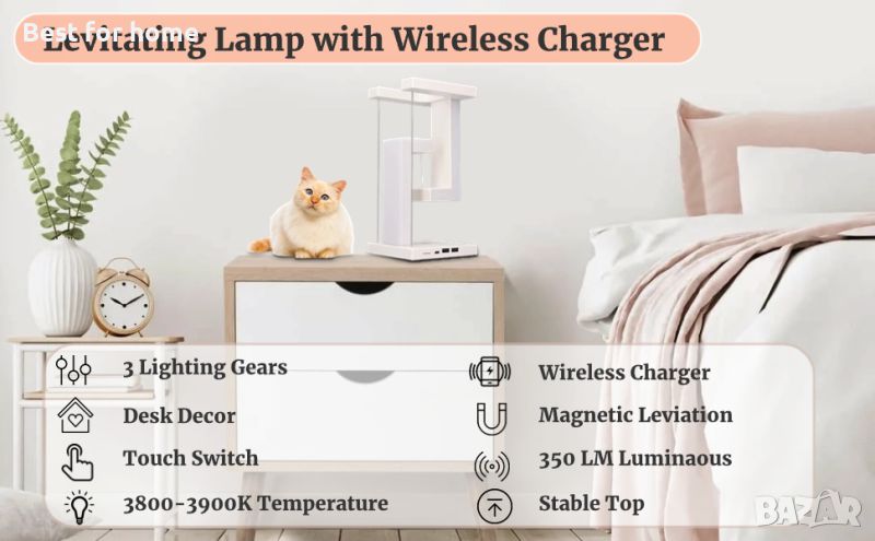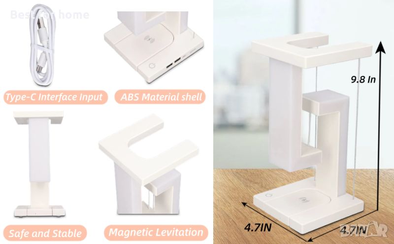 【Безжично зарядно устройство】 Левитиращата лампа използва дизайн за безжично зареждане за мобилни телефони, така че не е нужно да търсите кабели за зареждане, което осигурява повече удобство.