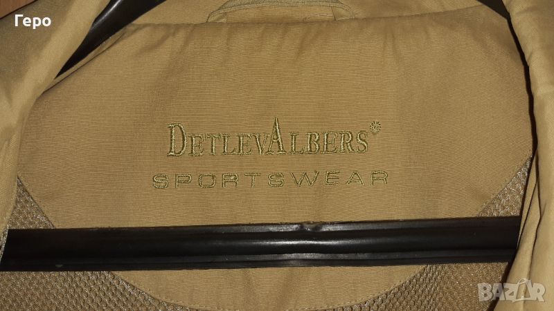 Мъжко пролетно - есенно яке DеtlevAlbers sport sweaer, размер XL, ново, без забележки. Цвят тъмна ванилия ( слонова кост). Размери: гръдна обиколка 124см, дължина 67см., дължина ръкав 60 см., разснояние от рамо до рамо 52см. Множество външни и вътрешни джобове, оригинални ципове и копчета тик так с логото на бранда.