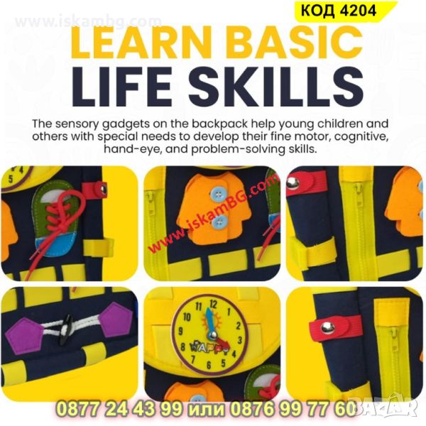 Сензорните играчки в раницата помагат на малки деца и хора със специални нужди да развият фина моторика и когнитивни умения, координация око-ръка и решаване на проблеми.