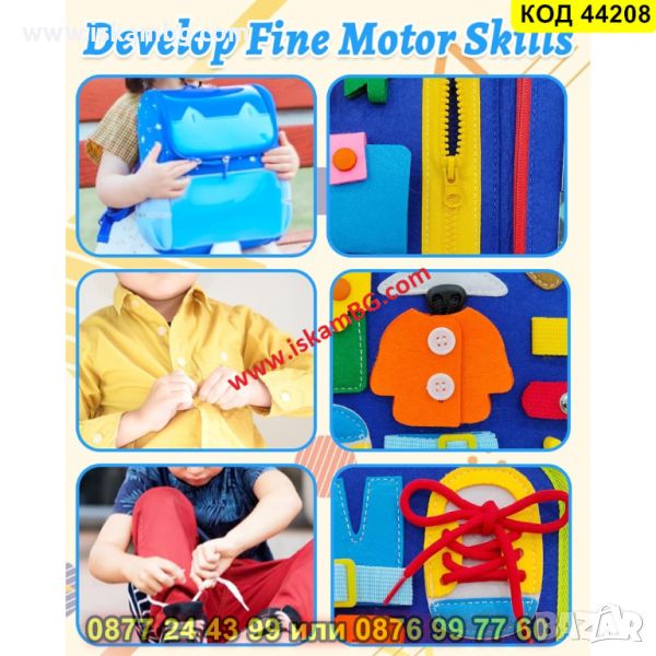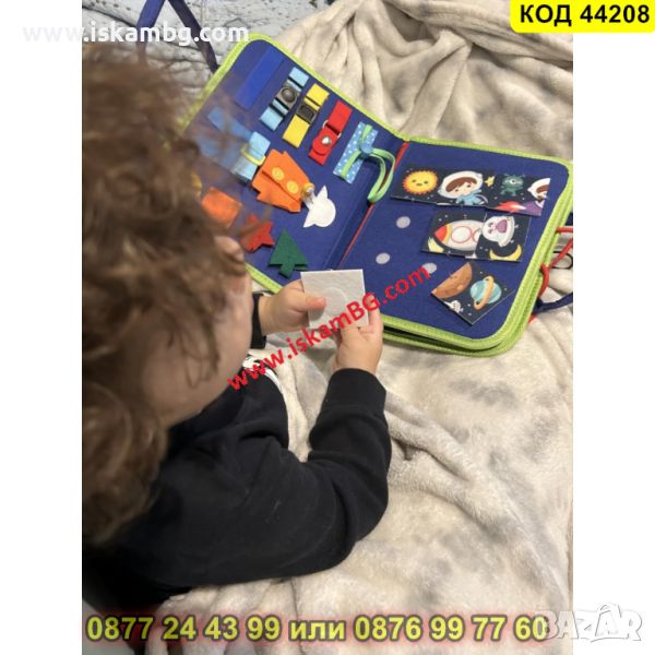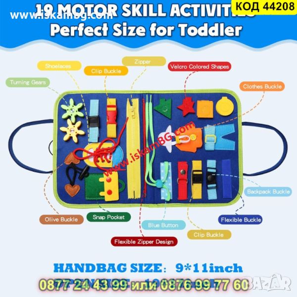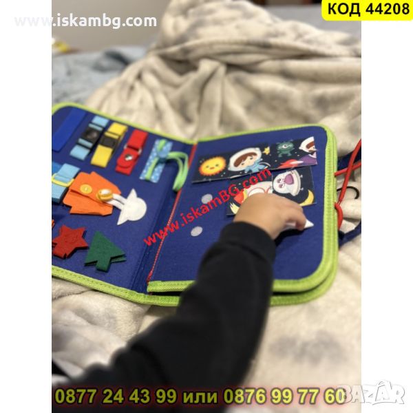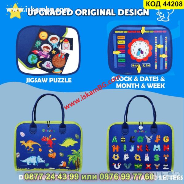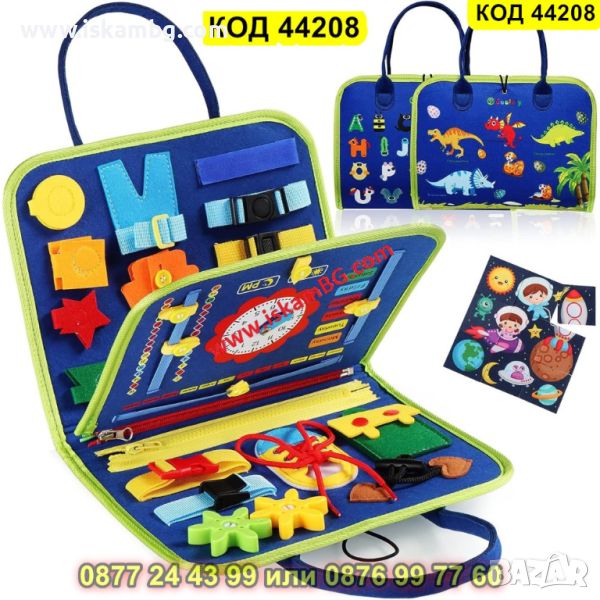 Бизиборд книжка Монтесори тип образователна игра, чантичка с дръжки - КОД 44208