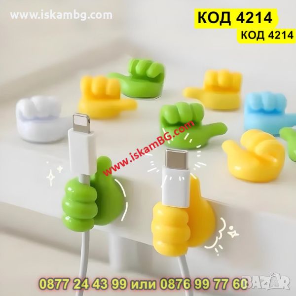Самозалепващи силиконови държачи за кабели с дизайн Палец - комплект 10 броя - КОД 4214