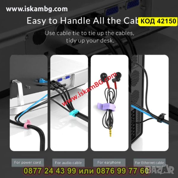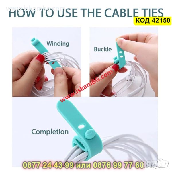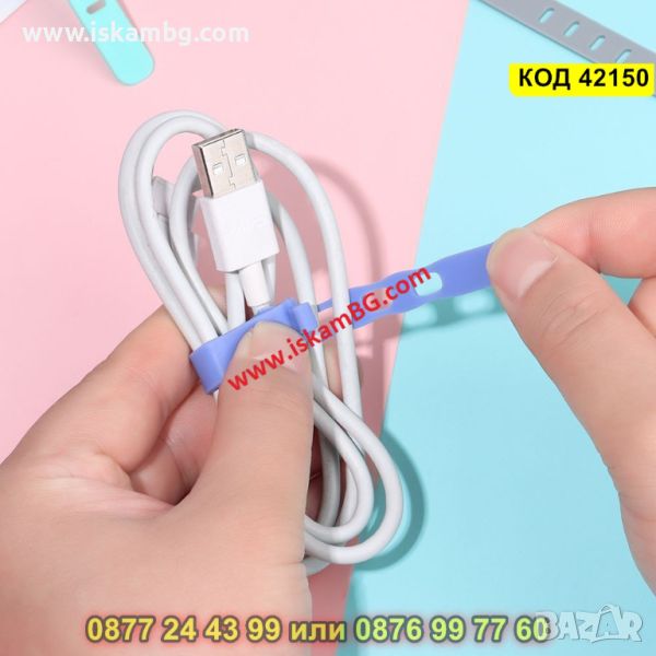 Комплект 4 броя силиконови връзки за кабели - КОД 42150