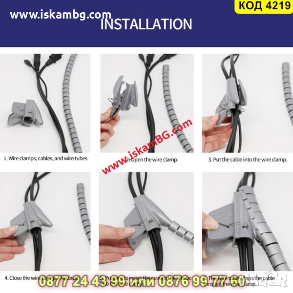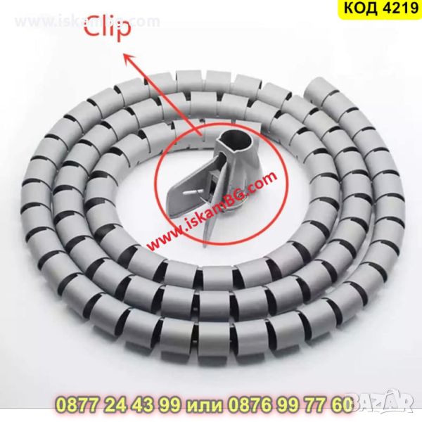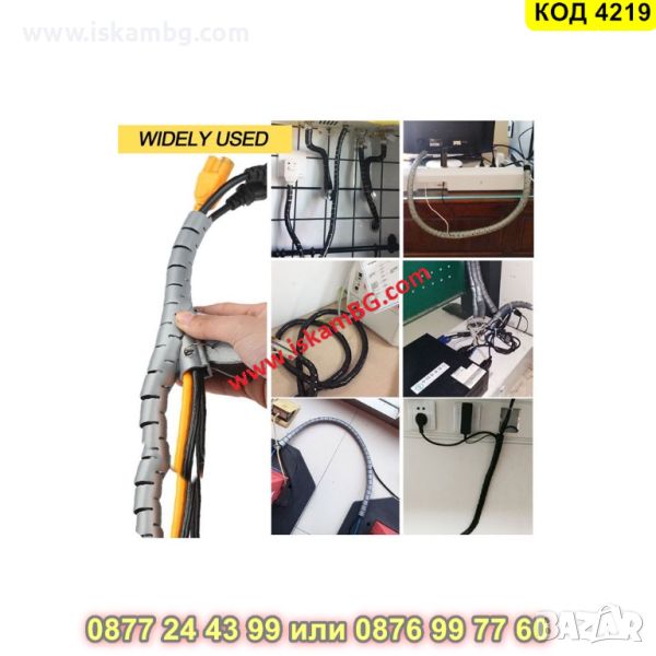 Спирален органайзер за кабели с дължина 3 метра в сив цвят - КОД 4219