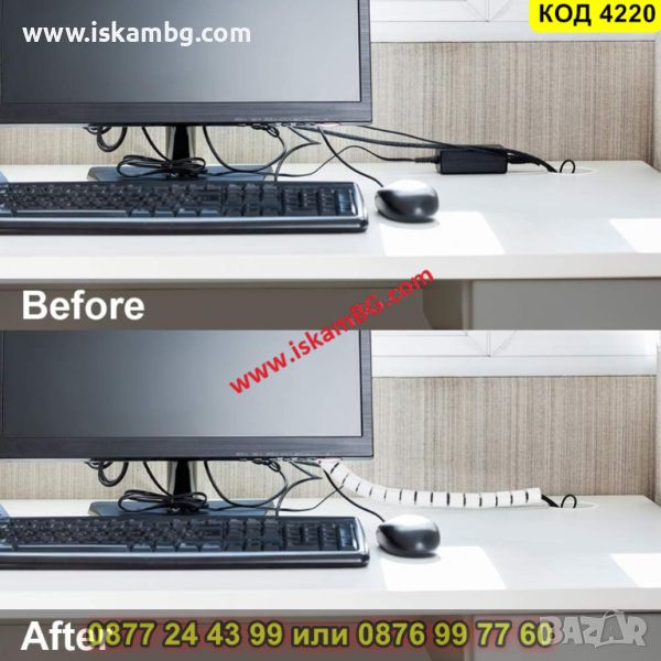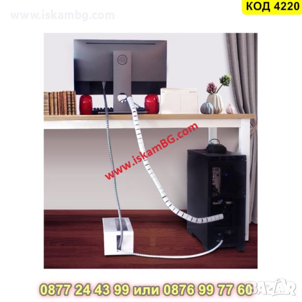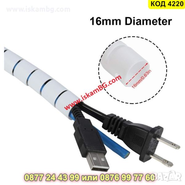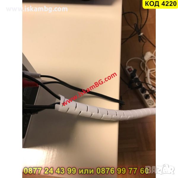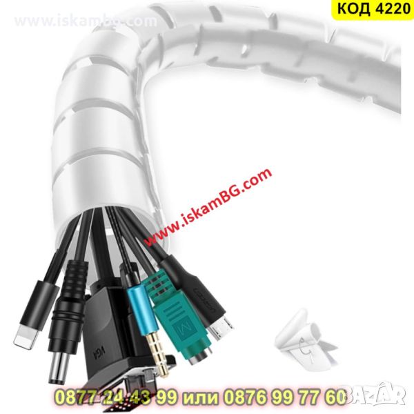 Спирален органайзер за кабели с дължина 3 метра в бял цвят - КОД 4220