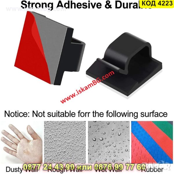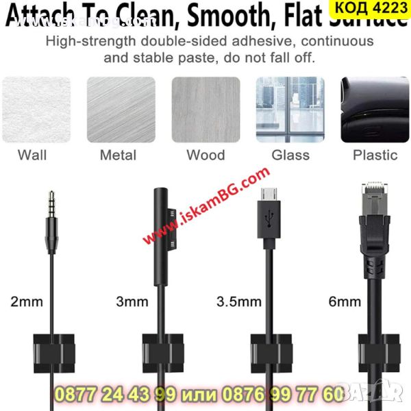 Лепяща щипка тип органайзер и държач за кабели 10 броя в комплект в черен цвят - КОД 4223