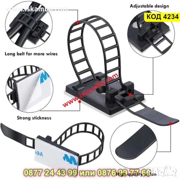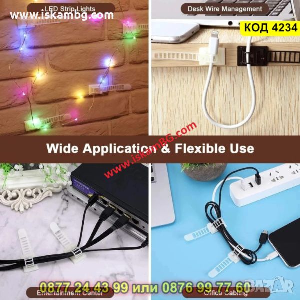 10 броя залепващи се държачи тип органайзер за кабели - КОД 4234