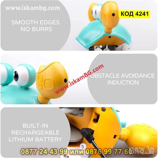 Въпреки факта, че домашният любимец пълзи бързо, не е нужно да се притеснявате за стените или мебелите в дома си. Ракът е достатъчно умен, за да ги избягва. Благодарение на сензорите разположени на двете му голями щипки, рачето танцува между мебелите в стаята. Веднага щом усети препятствие, то бързо ще промени пътя си и забавлението ще бъде безкрайно!