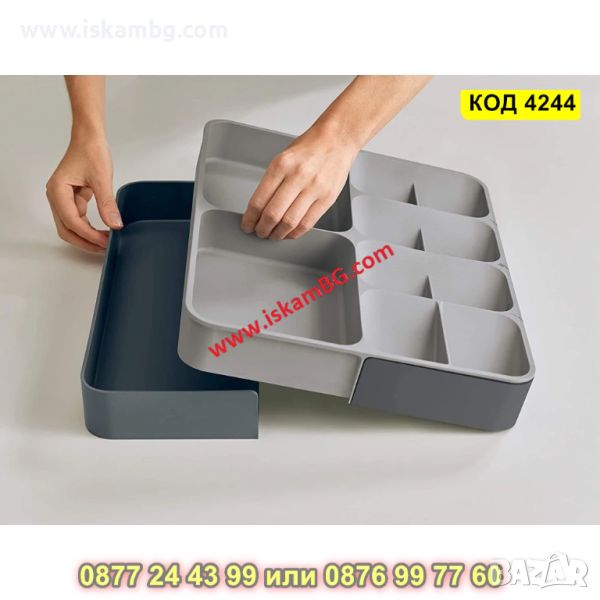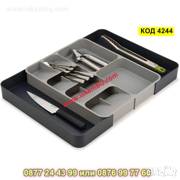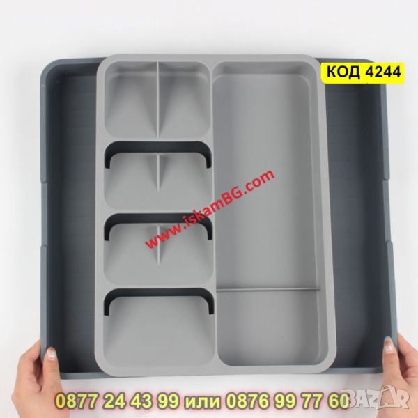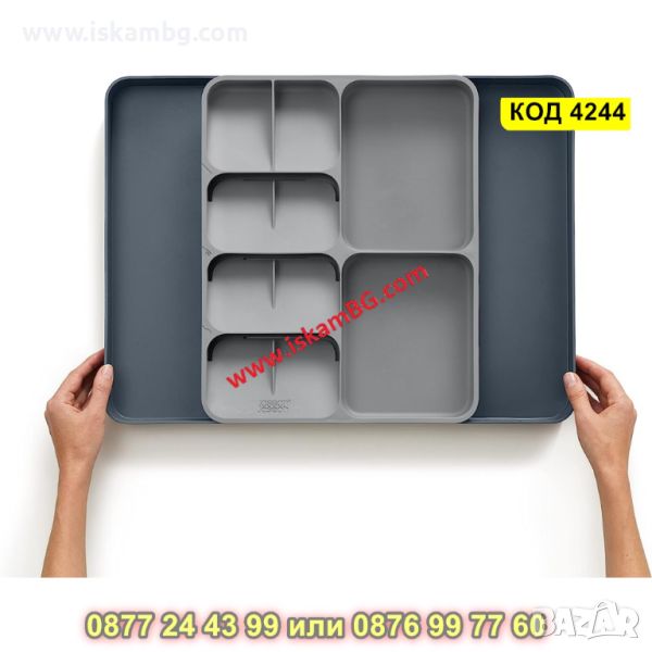 Адаптивност: Органайзерът е проектиран да се разтегля и да се адаптира към размера на вашето чекмедже, осигурявайки максимално използване на пространството.