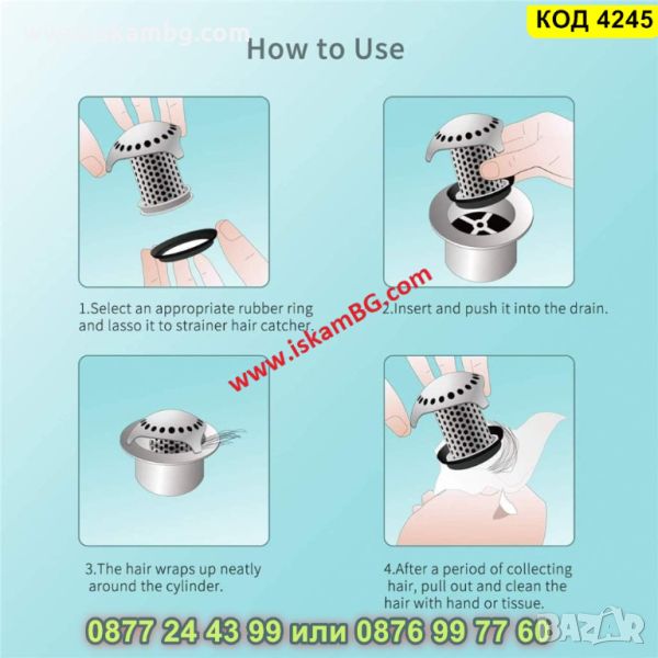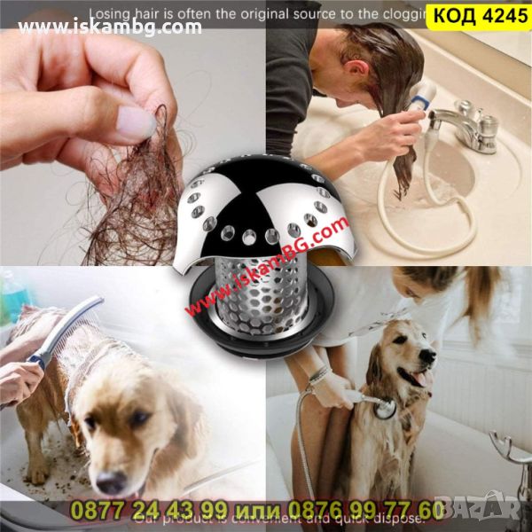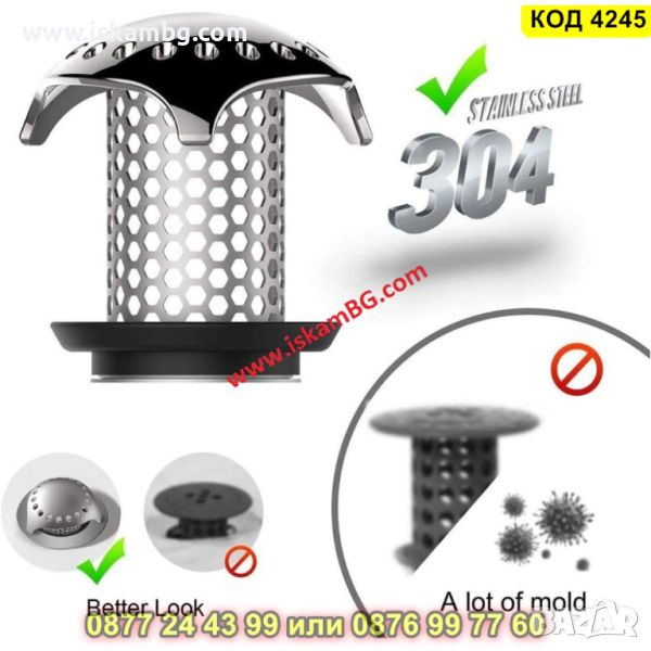 Улавящо устройство на косми за мивка, душ кабина, вана или баня от стомана - КОД 4245