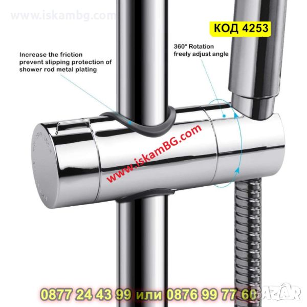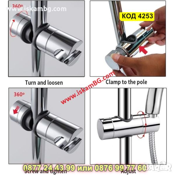 Държач за душ слушалка предлага удобство и функционалност за вашата баня. Подходяща за душ тръби с диаметър от 18 до 25 мм, тази регулируема опора осигурява здраво и сигурно закрепване на душ главата. Нейната способност за въртене на 360 градуса позволява на потребителя да настрои посоката на душа с лекота, осигурявайки персонализиран комфорт по време на душ.