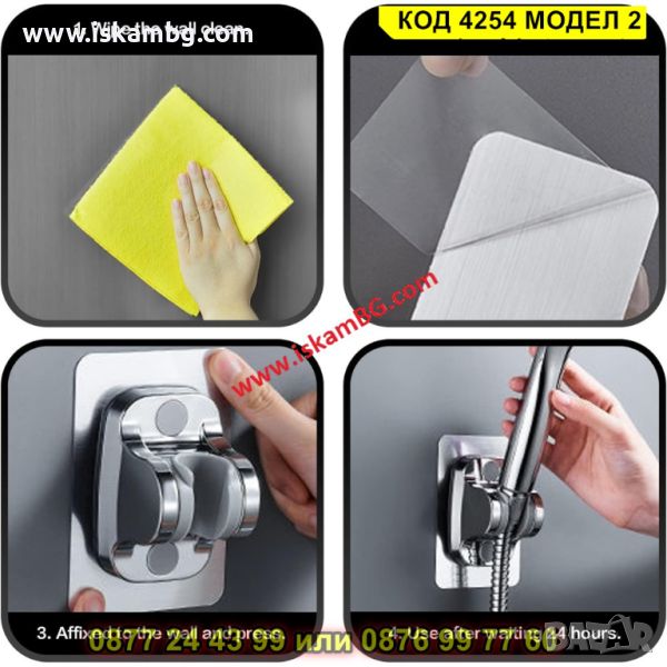 Самозалепваща стойка за душ слушалка - лепяща - КОД 4254 МОДЕЛ 2
