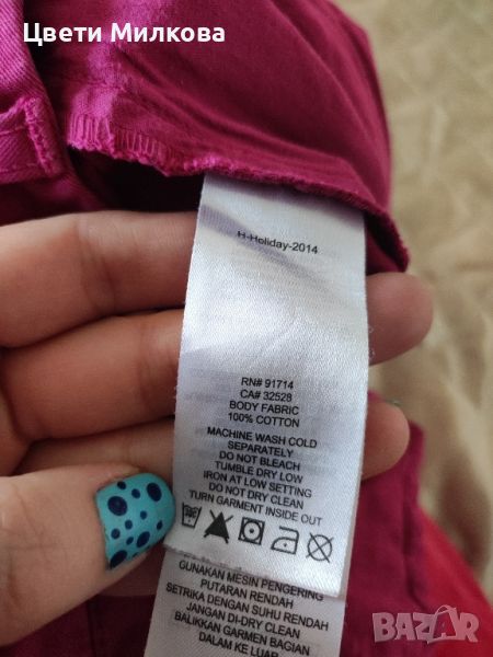 Панталоните са в отлично състояние. Цвета им е бордо (най-близко до реалния цвят се доближава последната снимка, с етикета). Има подробни размери на снимките.