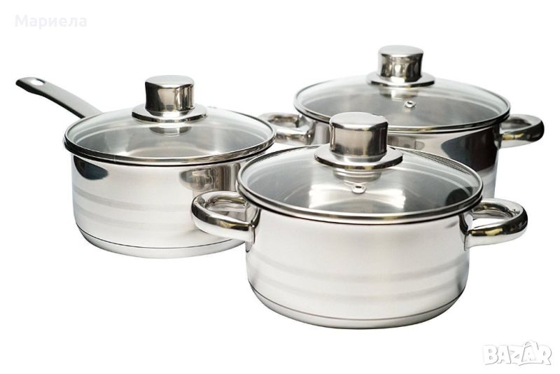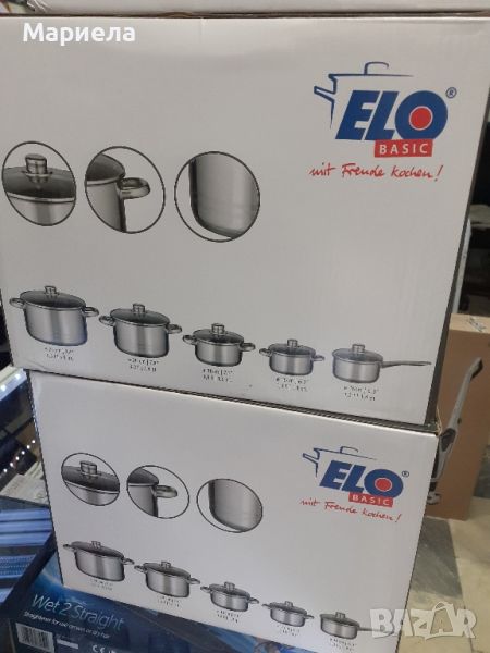 Практичен комплект от 4 тенджери и една касерола, който ще покрие всички нужди по време на приготвянето на храна. Имате възможност за разнообразие с различни по вид и обем ястия, както и за многостепенно меню. Материалът е висококачествена неръждаема стомана, подходящ за почистване в съдомиялна машина. Дъната на всички съдове са двойни, подходящи за всички видове котлони, включително индукционни. Капаците са от топлоустойчиво стъкло и изводи за пара. Възможно е печене и във фурна до 240°C.Комплектът съдържа: 1 бр. тенджера с диаметър 16 см, вместимост 1.3л 1 бр. тенджера с диаметър 18 см, вместимост 1.8 л 1 бр. тенджера с диаметър 20 см, вместимост 3.2 л 1 бр. тенджера с диаметър 24 см, вместимост 5.5 л 1 бр. касерола с диаметър 16 см, вместимост 1.3 л 5 бр. съответстващи стъклени капациОбща информация Mарка: ELOТегло (кг.): 5,635Основни цветове в артикула: СРЕБРИСТБрой пакети: 1Материал: НЕРЪЖДАЕМА СТОМАНАРазмери в см.: Ф; вместимост тенджера (л) 1.3: 16 Ф; вместимост тенджера (л) 1.8: 18 Ф; вместимост тенджера (л) 3.2: 20 Ф; вместимост тенджера (л) 5.5: 24 Ф; капак 2 бр.: 16 Ф; капак 1 бр.: 18https://www.amazon.com/ELO-Stainless-Induction-Cookware-Ventilated/dp/B003U4R0XI#customerReviews Ф; капак 1 бр.: 20 Ф; капак 1 бр.: 24