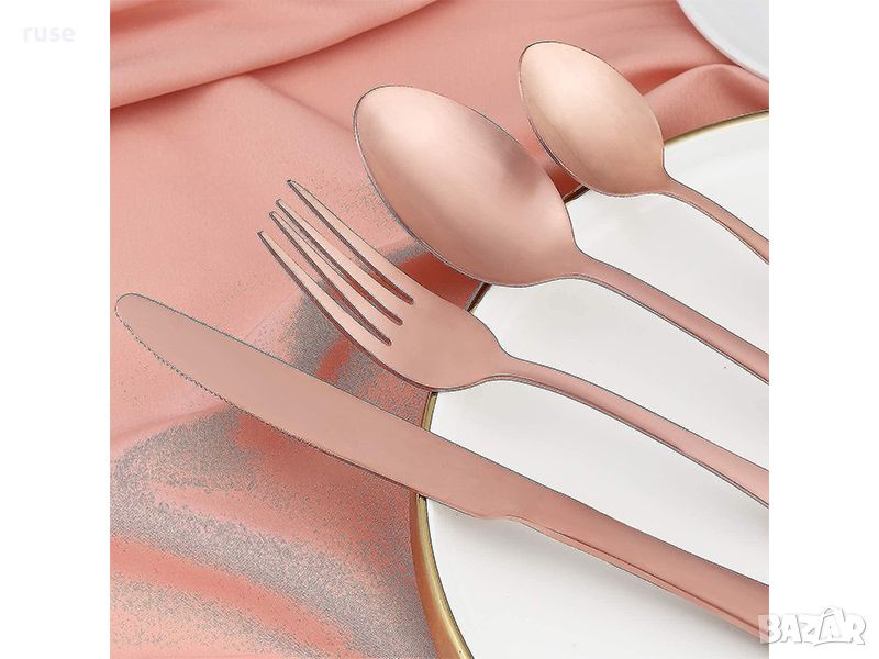 НОВИ! Комплект прибори за хранене 16 части МАТ розово злато