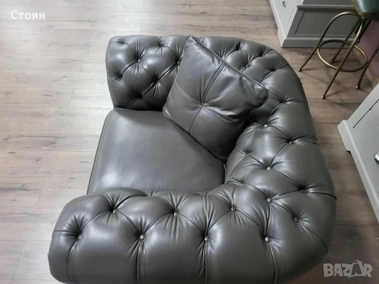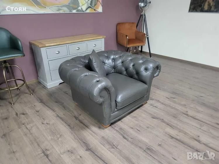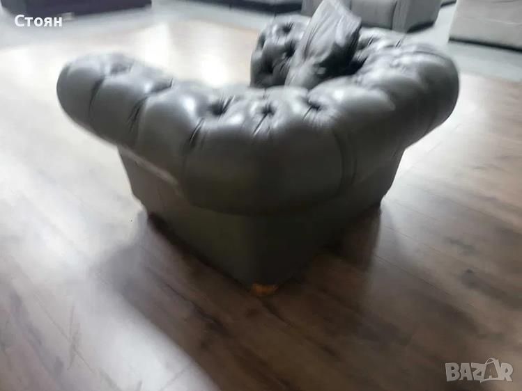 Сив кожен фотьойл тип Честърфийлд → Обява 45560417